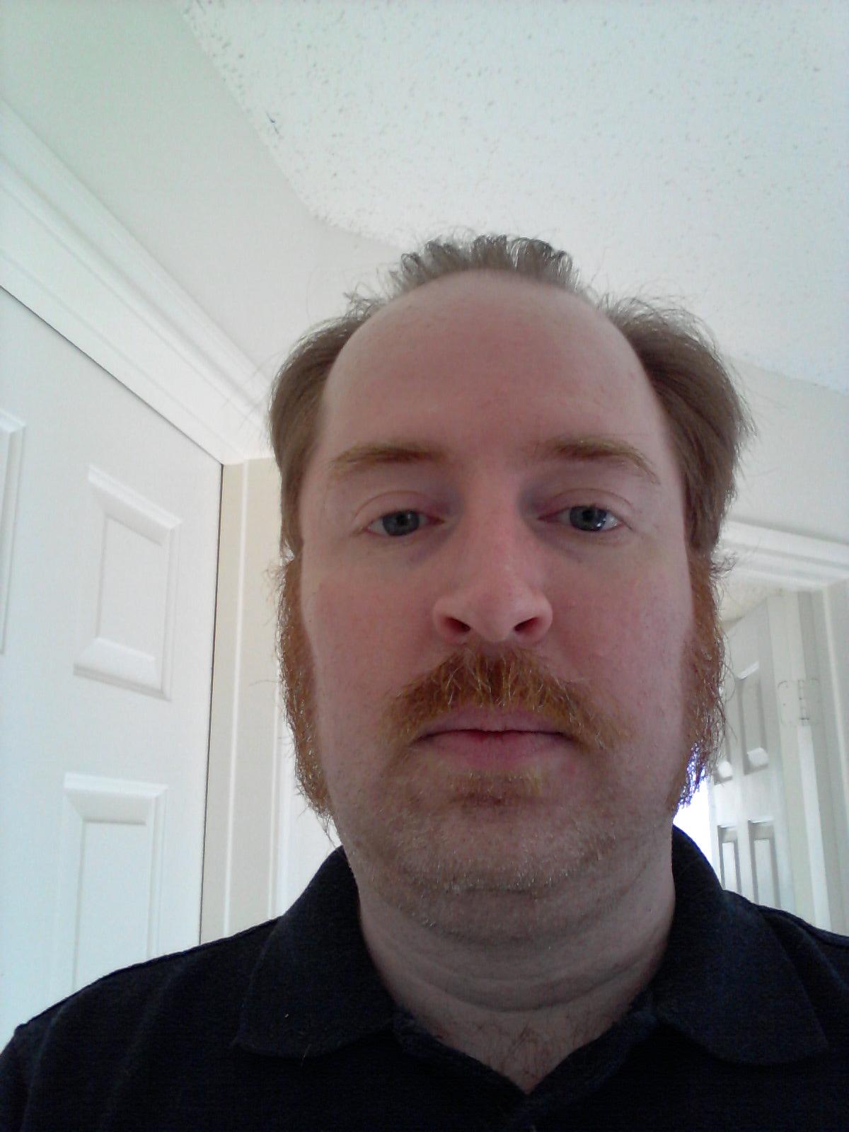 Newell decided to get contacts instead of glasses at his appointment, and felt that the beard went better with glasses, so he shaved it all off. Here are shots of his transformation…it came in stages: