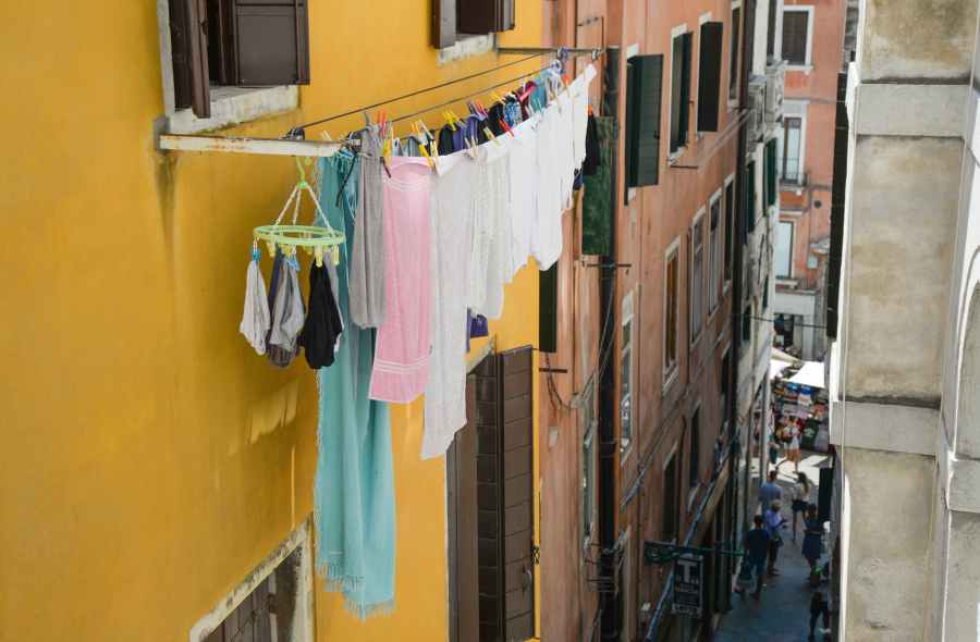 pink bath towel hang outside window